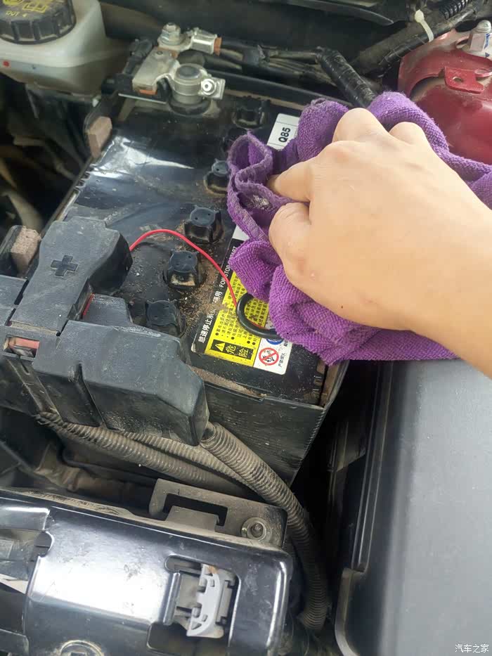 用抹布清洁一下电瓶表面的灰尘,防止在加速过程中有灰尘掉落进电瓶内部,
