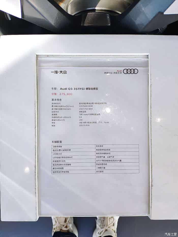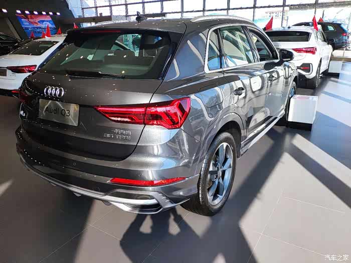2020款奥迪Q3,官方售价27.18—36.18万元。前脸采用家族式最新的八边形熏黑式蜂窝状中网进气格栅,醒目的LED日间行车灯,造型犀利的战斧式轮毂,造型炫酷的家族式LED尾灯。内饰是奥迪主打的科技风,全系标配10.25英寸的全液晶仪表盘,搭载主流的carlife、carplay、蓝牙电话智能手机功能的8.8英寸中控屏,挡位样式比较普通,档次感不够。前排座椅还配有腿拖,可以为驾驶者和副驾乘客提供良好的乘坐支撑性。2020款奥迪Q3轴距加长了70mm,并且后排座椅可前后150mm移动和座椅靠背多角度调节。 动力方面,35TFSI车型搭载1.4T+7挡干式双离合变速箱(最大功率150马力,最大扭矩250牛米),40TFSI车型搭载2.0T+7挡湿式双离合变速箱(最大功率186马力,最大扭矩320牛米),45TFSI车型搭载2.0T+7挡湿式双离合变速箱(最大功率220马力,最大扭矩350牛米)。两套动力组合系统应用的时间较长,稳定、可靠性表现出色。