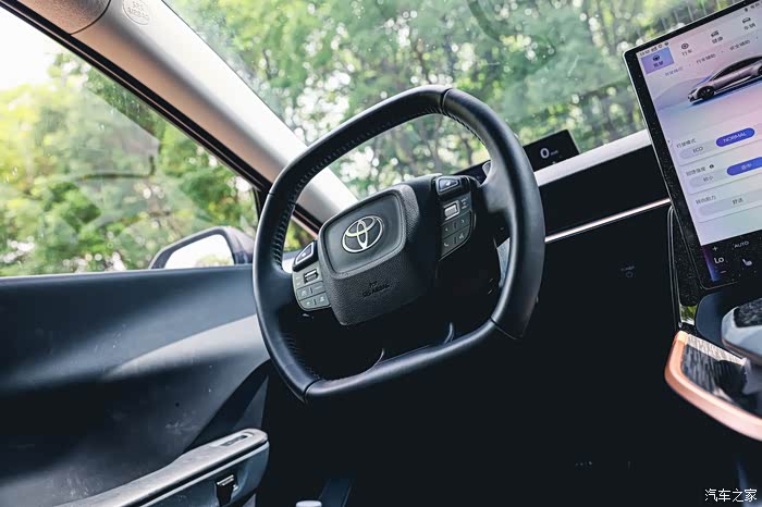 丰田bZ3还不错的动力让我不太满足佛系驾驶,开始尝试在城市道路的车流中不断变线,尝试这台车的操控性,丰田bZ3给我的反馈是你的指令我都能满足。先来说说方向盘,它的转向灵敏度调的比较家用,回正力矩也属于比较舒适的类型,但是应对一些紧急变线,方向盘能做到给多少角度车子就跟着做出多少的转向动作,可以说配合的很默契。低速掉头的时候,方向盘很轻盈,高速会慢慢变得重手,这也很正常。