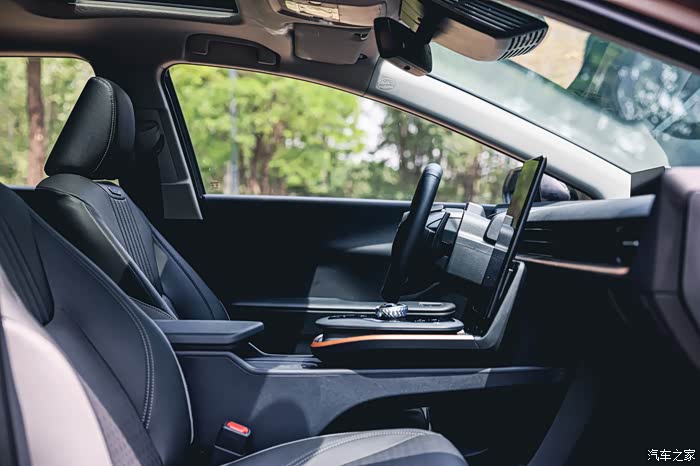 中控台则配备了一块12.8英寸的竖向液晶大屏,几乎所有的功能都集中在了这块屏幕中。你比如、空调、倒车影像、车辆状态、主动安全配置、充电模式等等。如果嫌麻烦,可以呼唤“你好,丰田”帮你来操作。体验了下语音唤醒功能,还是识别的反应程度很快的,据说是支持120秒内的连续对话,还有上下文记忆功能。