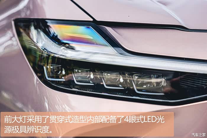 前大灯采用了贯穿式造型内部配备了4眼式LED光源极具辨识度,并提供了LED日间行车灯、自适应远近光以及大灯高度可调等实用功能。18英寸的铝合金轮圈造型时尚运动,前/后轮胎规格尺寸均为225/50 R18。贯穿式的LED尾灯设计是当下流行的元素,具有一定的辨识度。