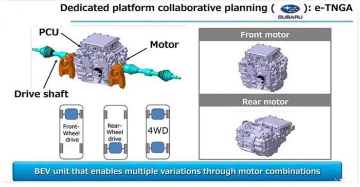 我们知道,丰田从不打无准备之仗,也不做亏本买卖,所以研发e-TNGA架构的时候叫来了斯巴鲁、铃木、雷克萨斯、大发几位“合作伙伴”,也算是在研发成本上进行了分摊,所以我开头说丰田节省了不少成本。当然作为回报,未来斯巴鲁、铃木、雷克萨斯、大发这几个品牌也会基于e-TNGA架构推出自己品牌的车型,就拿钟爱做小、微型车的铃木和大发来说吧,e-TNGA架构中的一条设计规定就是为它们量身定做的。说白了,e-TNG架构允许被设计成前轮驱动、后轮驱动甚至是四轮驱动。对于小型车来说,电机前置是最佳选择,因为可以更加集中的布置电驱、电控系统,把更多的底盘空间留给电池,并且预留出一部分后备厢空间。而喜欢发挥四驱系统效能的斯巴鲁可能就会选择布置前后双电机来保证车辆的玩乐属性,这其实都是e-TNGA架构的功劳。