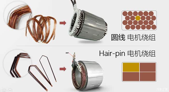 为什么最近新能源车企都抢着宣传自己用的是扁线电机呢?其中的原理还是很简单的。玩儿过四驱车的朋友很容易理解我接下来要说的话,四驱车的马达其实就是个电机,我们拆开马达看到的是磁铁和一圈圈缠绕的铜线,铜线的粗细和数量都会影响这颗马达的扭力和功率。这次咱们不往深奥的了说,就说如何做才能增加电机的功率。很简单,就是缠绕更多的铜丝。但是这里会遇到一个问题,马达的外壳的尺寸是固定的,如何缠绕更多的铜丝呢?那就是把铜线砸扁,减少铜丝缠绕之间的空隙。这里有一个专业术语叫做——槽满率,可以简单的理解为槽满率越高,电机内铜线缠绕的数量越多。