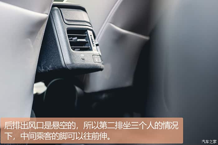 座椅方面的用料更厚道,采用了高品质的材料,并且包裹性和支撑性都不错,换来了非常舒适的乘坐体验。后排的地台是纯平的,哪怕后排坐3个人,相对的乘坐体验也是不错的。后排出风口是悬空的,所以第二排坐三个人的情况下,中间乘客的脚可以往前伸。