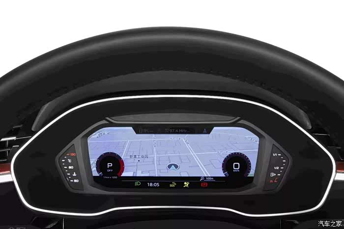 车内营造出了满满的豪华感与科技感,皮质与Alcantara几乎覆盖了车内大部分区域。标配10.25英寸全液晶显示屏与选配12.3英寸全液晶仪表盘组合成为奥迪虚拟座舱系统与MMI系统,科技感十足,同时清晰度和便捷性也达到了很高的水平,驾驶员可以在双手不离开方向盘的情况下对车辆驾驶模式以及其他参数进行调节。空调保留了旋钮的设计,相比在屏幕中操作更加便利,同时旋钮以及按键的质感上乘,豪华名副其实。可惜的是档把没有采用Q8上的全新设计,与中控不能构成更加和谐的整体。