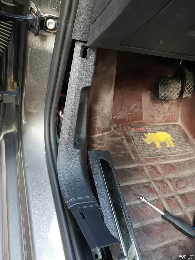 方向盘转向柱旁根部边的隔音棉掀开一部分