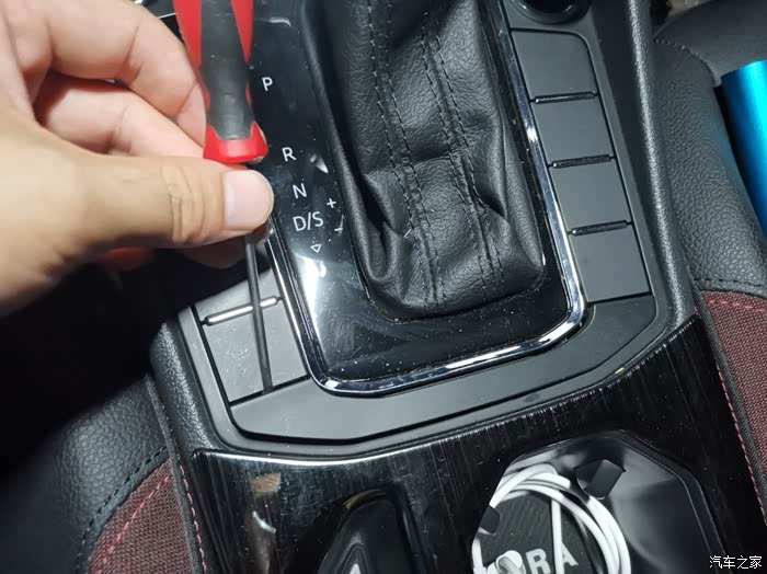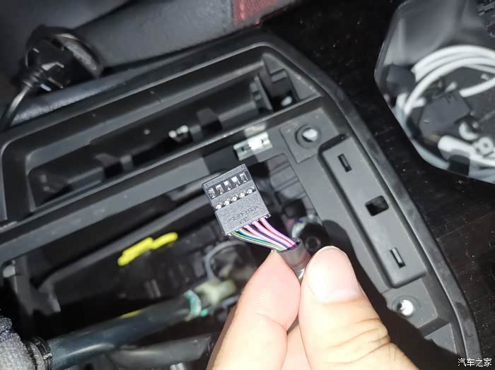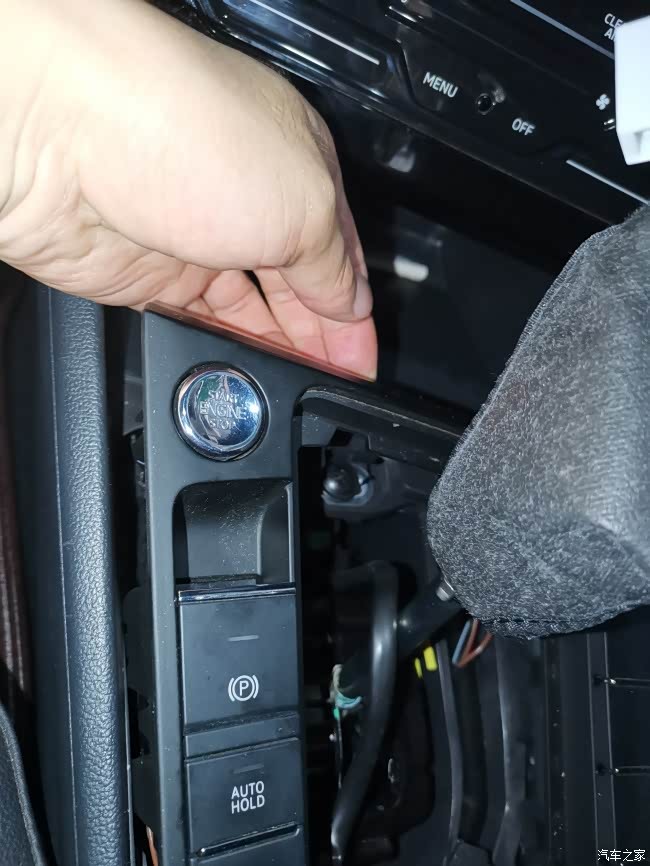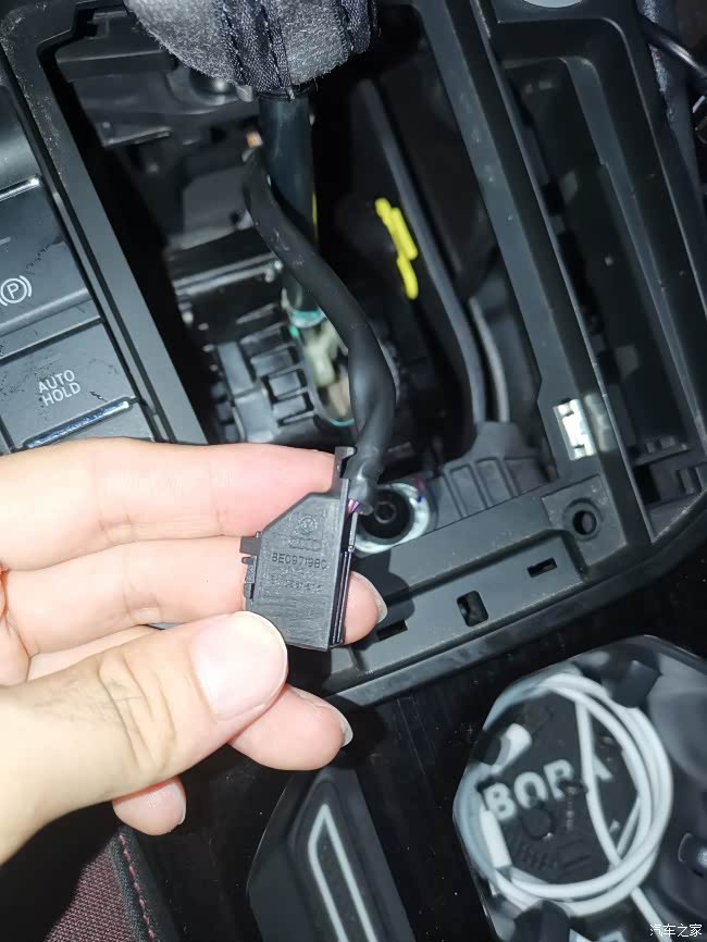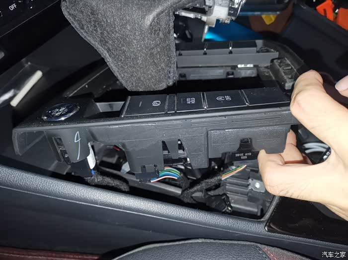 挡排框提起,拔掉下面的一键启动插头、自动启停、点烟器的3个插头