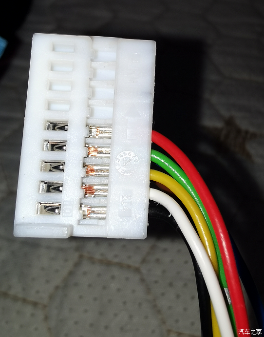 将后加线束端子插进原车线束插头里,注意针脚定义要和后杠雷达相对应