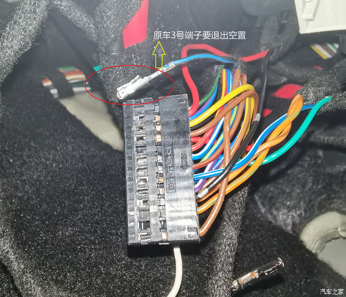 要注意的是原车T26插头的3号端子占用了泊车按钮信号的孔位,要退出来空置