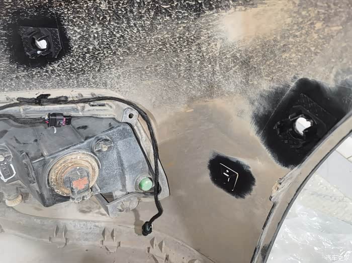 拆保险杠的方法网上很多,可自行搜搜索。保险杠拆下后地上铺个毯子或步,防止前杠直接放地上蹭花漆面。