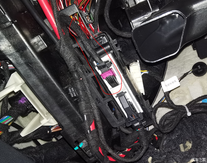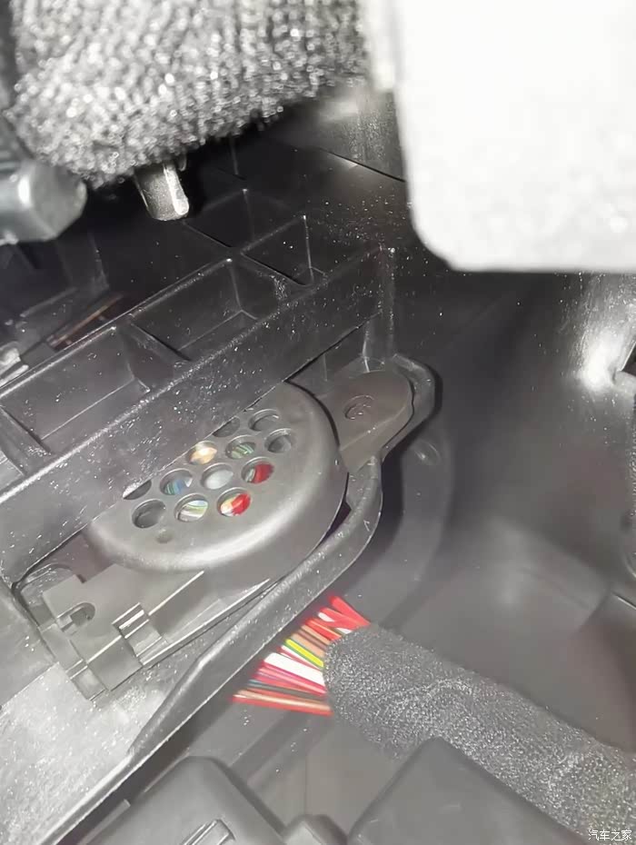 泊车按钮线束沿着中央通道布线到雷达模块,布线时要拆档把框、中央通道饰板,比较简单,网上可自己搜索,具体过程不再赘述。