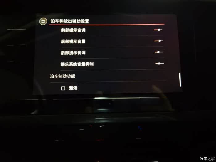 编码刷完后,中控屏会显示泊车和驶出辅助选项