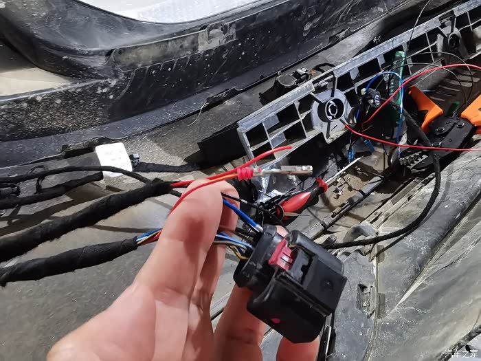 自己购买材料自己制作线束。前杠共6雷达线束分两段,一段位于前杠上,一段位于发动机舱,中间有插头连接。