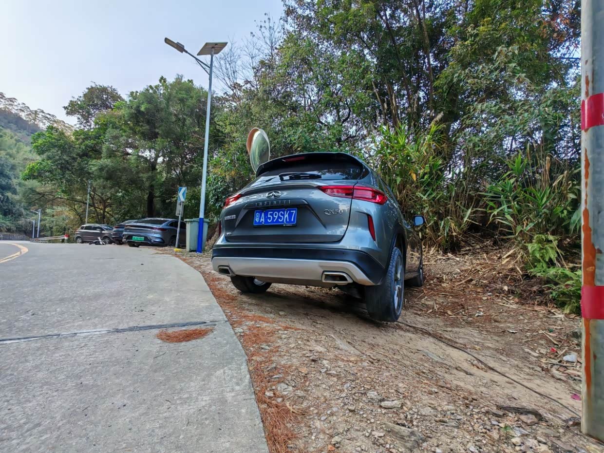 英菲的离地间隙很大,一般车这样停早就啃泥巴了