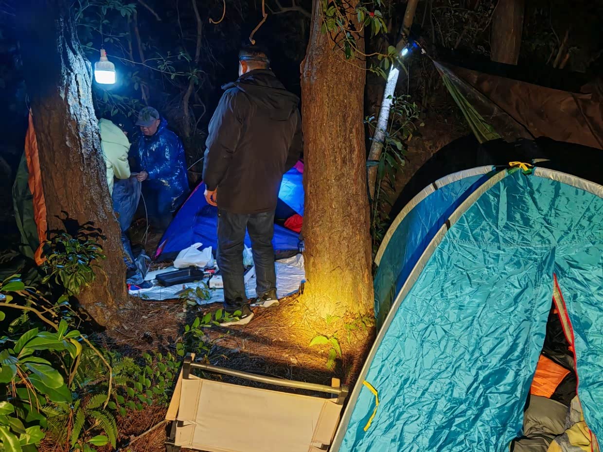 最近看到钓鱼群里,肇庆江谷水库有人钓到一条18斤的大翘嘴,不能忍了。马上趁着周末约上朋友杀过去,希望能解锁米翘。晚上气温很冷,戴上了帐篷和睡袋,晚上就在山上露营。
