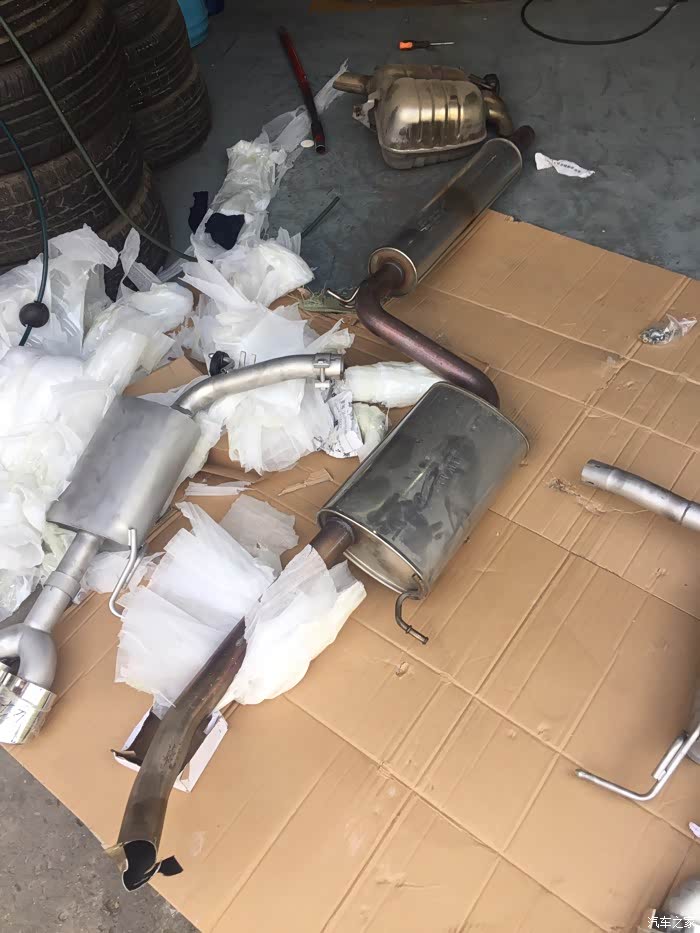 整个过程大约花费两个多小时,人工费200,配件3500。我特意要求商家给我弄的带声音的中尾段,点火和怠速时有低沉的声音(模仿V8的感脚)很多车友问我会不会很吵,我个人认为不会吵,我需要激情。但是也可以要求商家做成跟原车一样静音的,我认为要改就跟380的有所不同。中间有个小插曲,我一开始改的双边四出,那就用不了原车不锈钢支架了,改完有点太嚣张(动力又没那么嚣张)所以又改回跟380一样的外观了。