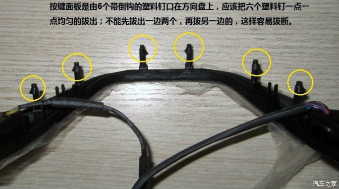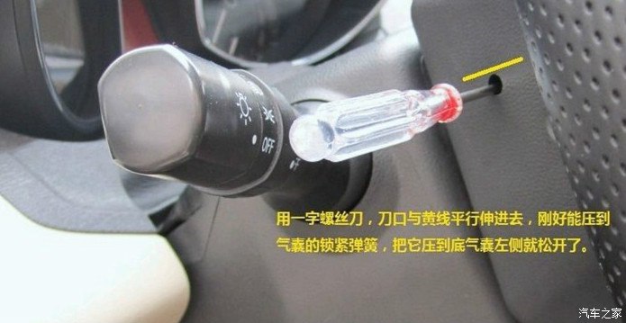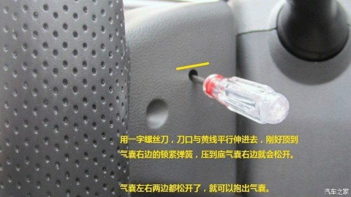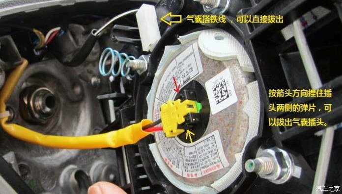 第三步,拆安全气囊。把原来控制按键,拆下,扣上新的控制按键,把气囊复位。OK