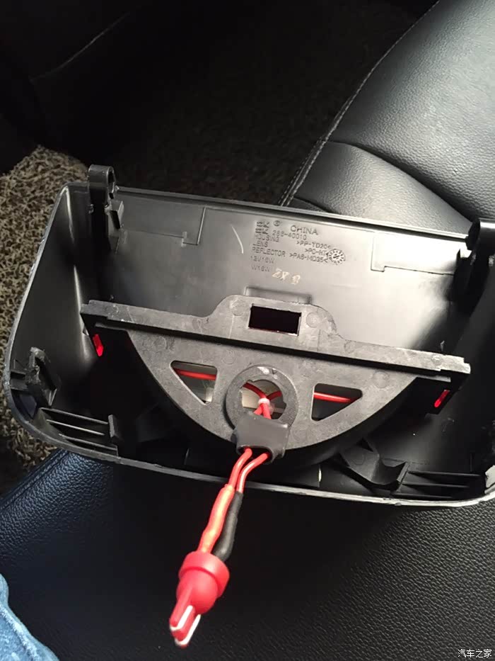 完美安装,瞬间高大上啊,和原车的插口插在一起就好了。如果不亮换个方向就行了,下雨车脏大家忽略