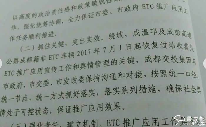 重磅:成都绕城,成温邛,成彭成都籍非ETC收费