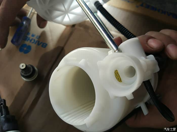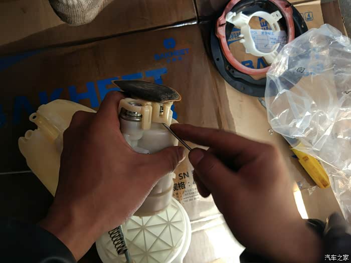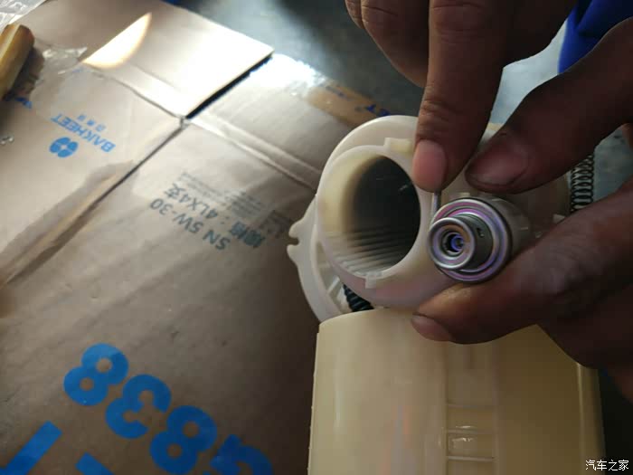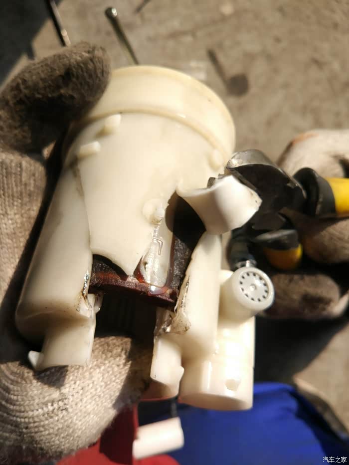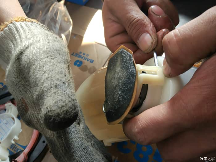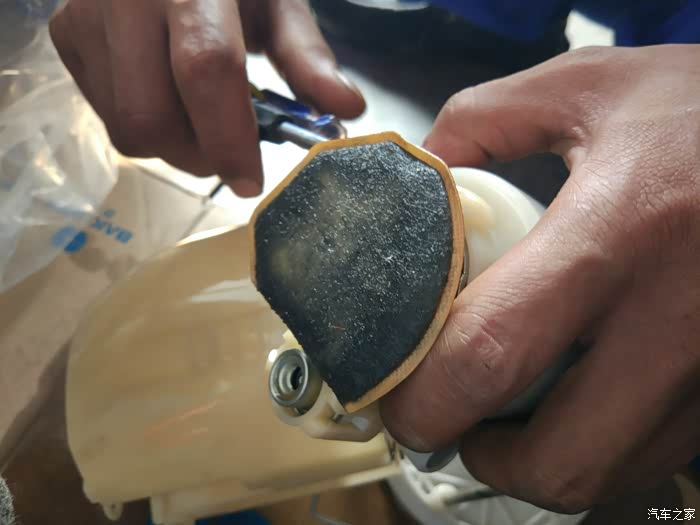 这里有省略了一些照片。反正是各种撬。这是汽油滤清器油泵上的过滤网,需要用清洁剂清洗一下。这个并非汽油滤芯哈。真正的汽油滤清往下看图。