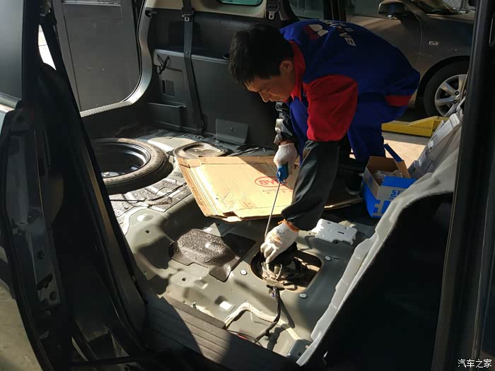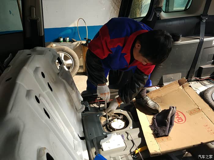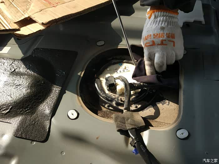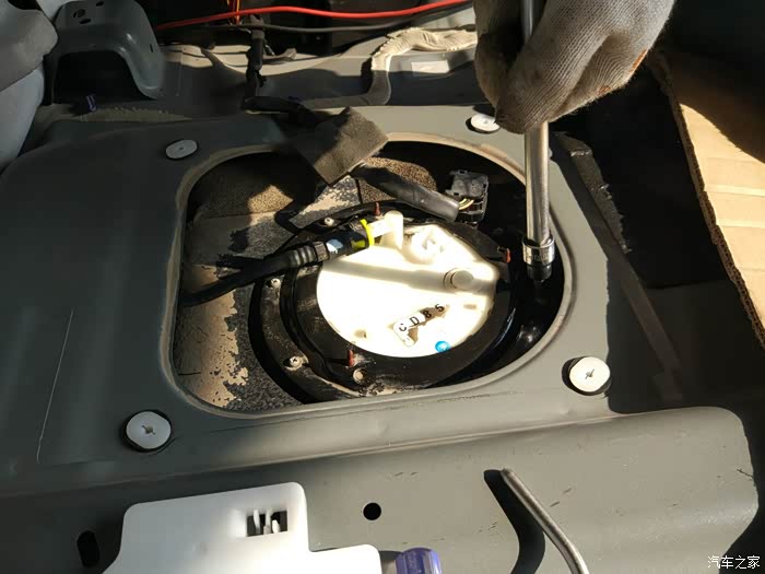 终于浮出油面,原来这个是直接坐在油箱里的。下面就是纯净的油箱。师傅说,油箱很干净。