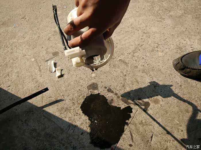 倒一倒,一滴滴淌出来的汽油是黑色的。6年,14.95万公里没换汽油滤清器的滤芯。