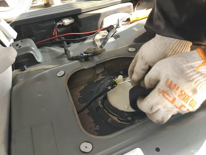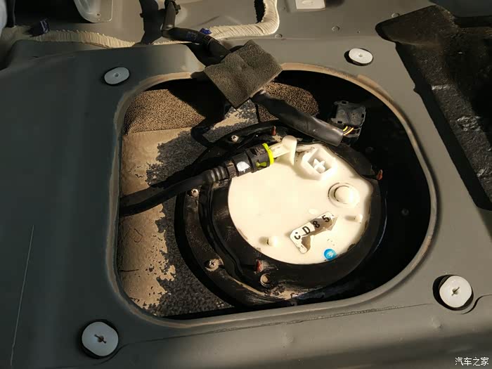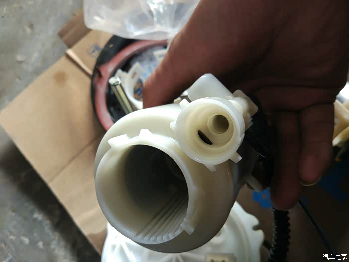 吹风机吹净灰,再用抹布抹干,是个白色的盖子。直接连的就是汽油滤清器,像水泵一样,潜在油箱里。其实也是水泵原理。