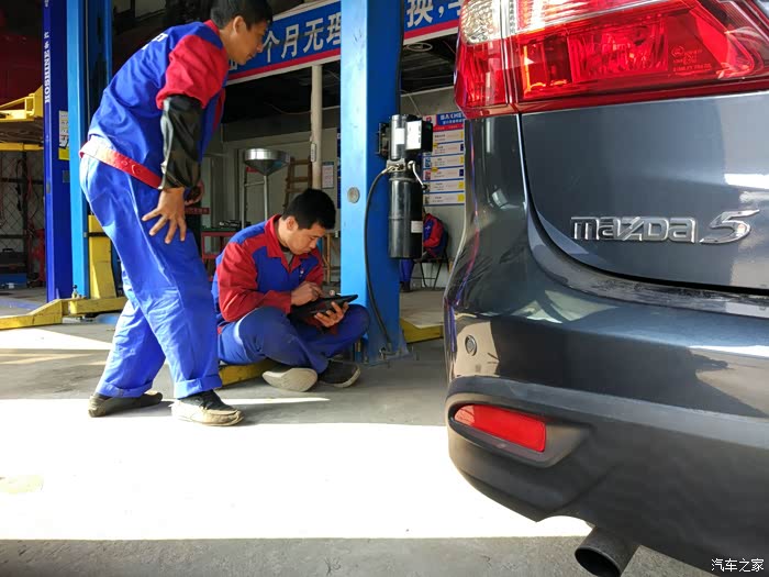 小马伴我走过6个春秋,14.95万公里。最近给油有些吃力,早上蹲下看排气管,怎么不喷水了?于是来到经常去的“诊所”,让黄师傅给个药方。瞧,他正用新玩意儿“学习”马5行车电脑。
