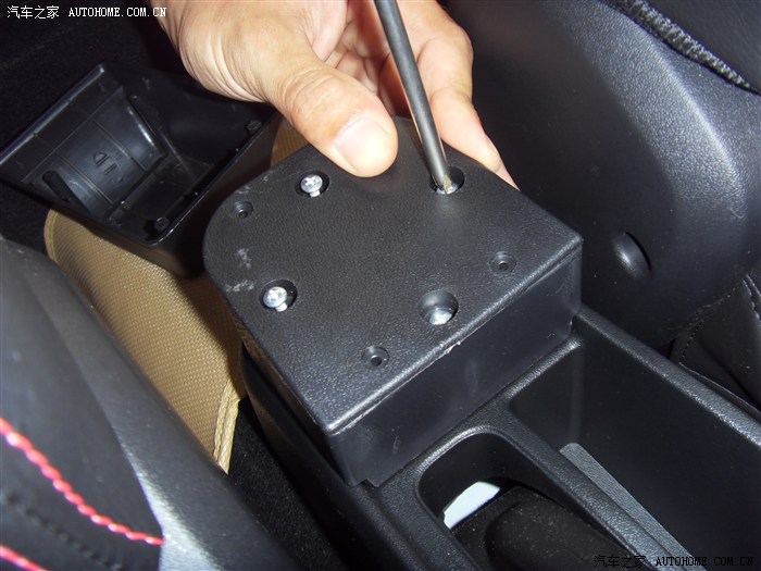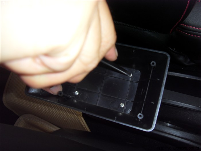 首先,定位打孔,其实不用电钻打孔的,那里的塑料很薄,用自攻螺丝加点劲就能拧进去啦!