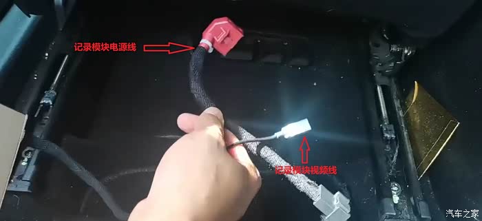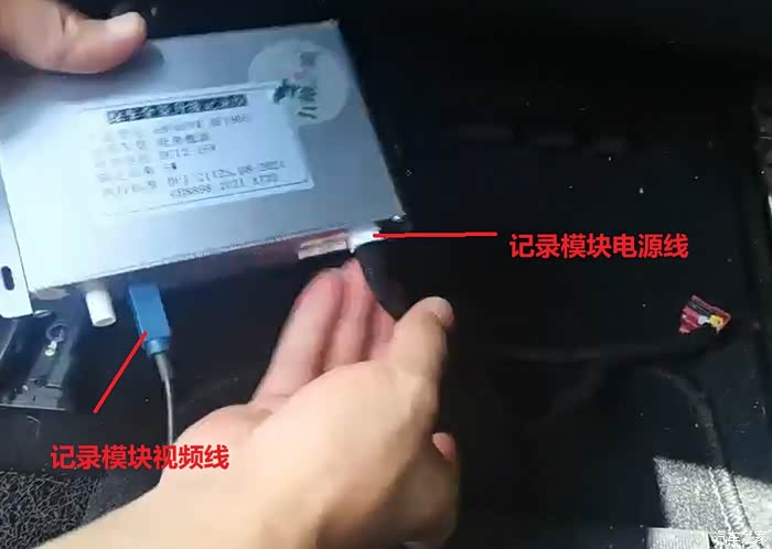 然后把原车主机拔下来的电源线和视频线与记录模块上面的电源线和视频线直接对插完成即可