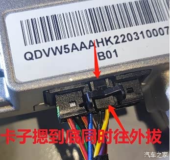1.原车主机电源线束比较短,有点难拔,用一字起子摁住卡子同时一起用力往外拔,才可以顺利拔出。