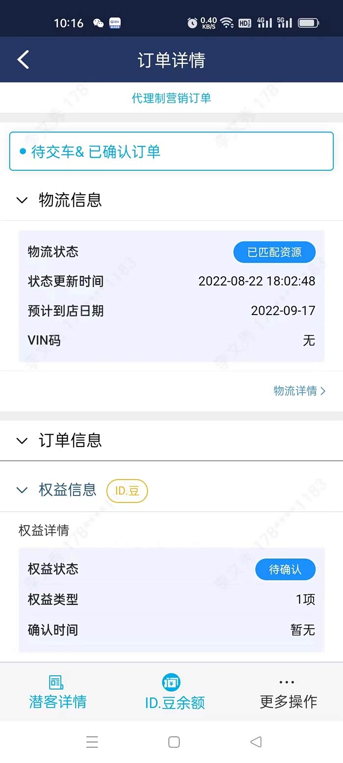 到9月初,一个月过去了,APP上显示的状态还是最初的“8月2日已创建”状态,我们开始急了,打电话给4S店销售,给大众ID伙伴发信息,打400电话,最后销售被催的没办法了,为了安抚我们,把他们内部系统里的信息发给我们,证明车辆已经要开始生产了。同时大众ID伙伴又跟我们强调,车辆的交货时间是2-8周,现在还没到8周。