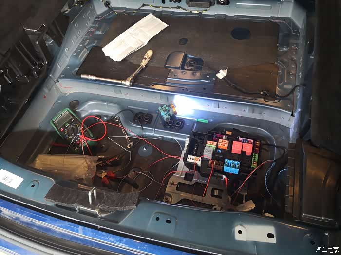 胎压电脑版安装位置是后备箱,后备箱被拆得很干净,具体安装位置可以参考我链接里上位楼主的位置,里面其实空间很多,想怎么安装都可以,主要取电有点麻烦,可以直接取电,但是安全考虑不取过保险的电肯定是不行的,为了加装保险,必须得拆保险盒