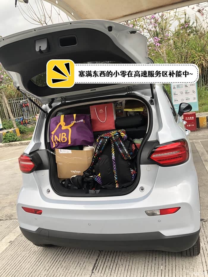 我就说2个人从杭州搬个家到广东,二排放倒,塞满回来没问题!没错,图片上的东西都是车子装回来的,外加2个人,看就知道有多少了。小零的数据尺寸是3620mm*1652mm*1577mm,轴距为2400mm,后排来看,拥有210L-508L的可变空间,虽然没有中控扶手看着是窄了点,但是她高啊,空间一下就拉平了。座位的宽度大小对于体型不大只的男生来说也是够够了的,女生开的话完全富余,而且外观来看一点也不小。2个人开车出去露个营旅个游,完全也没问题。当然,你要是对空间有贼高要求一家四口那种或者体形大只的,那当我没说了。