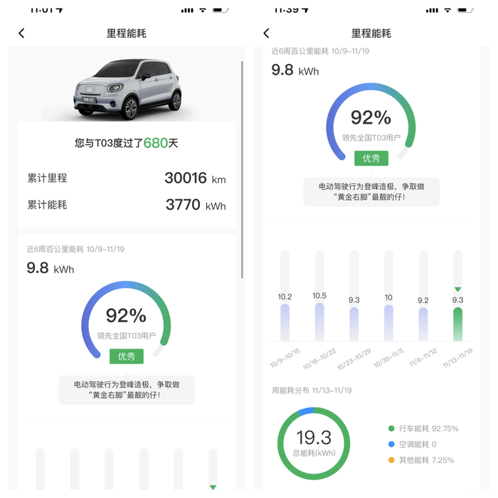 以上就是我基于看大家经常讨论的T03问题的小总结,这开了3W公里的第680天,每一天都觉得小零真的是劳模,工资要的低(电费便宜)做事又勤快(加速超车快+里程行驶数),事情还能给你办好咯(路上没出过啥问题),关键是还不请假(从来没有三天两头这不舒服那有小问题而开不了车去办事),这样的劳模小零简直是小车性能源界的楷模!