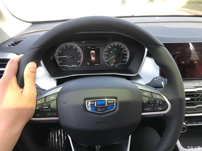 运动三幅式方向盘,感觉更有立体感,方向盘上的操控按键也是听说的。内饰确实焕然一新,有别于吉利在售的其他车型。