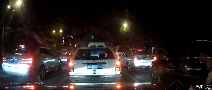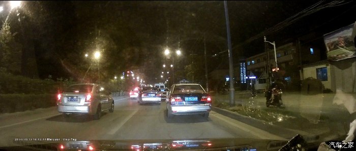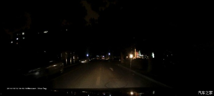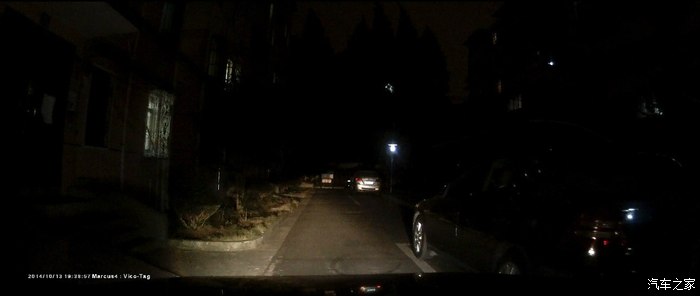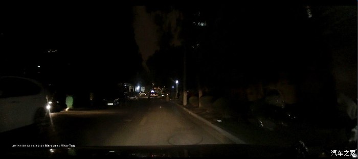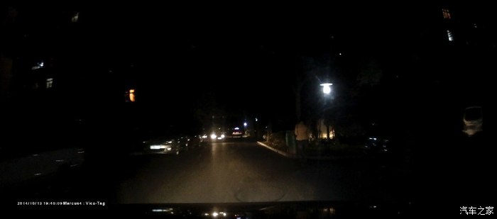前方和侧方的车牌看得清清楚楚的,路灯在很不亮的情况下,效果也一样的好,看小区里的。