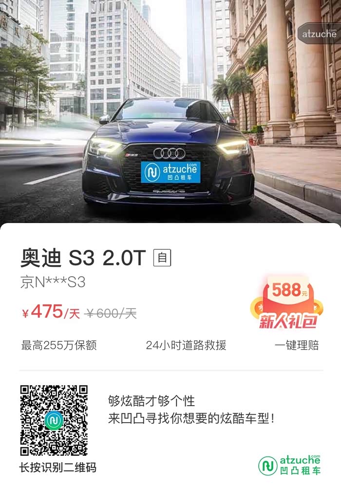 分享一个好消息:北京的网友们可以通过凹凸租车平台体验到这台车了。