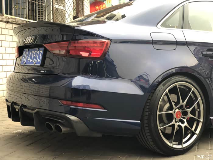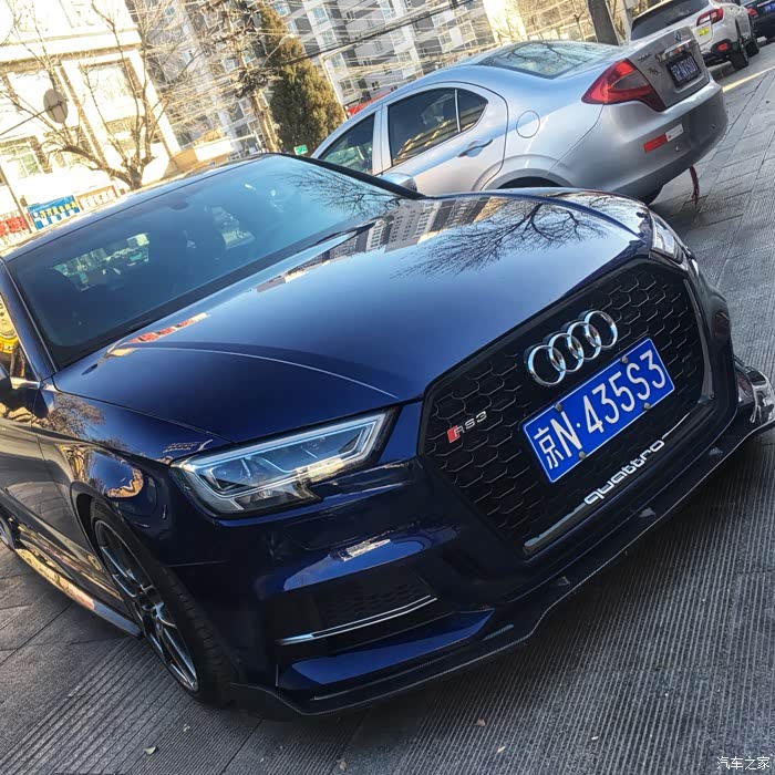 后来换装了一套RS3的中网和前杠,虽然灯旁进气口仍然没有外观改装完美方案,但包围换以后气质立马变了样,只不过RS3左右进气格栅里面有防石子的网格,S3使用后时间长了可能会大大有损两侧进气的功能性。