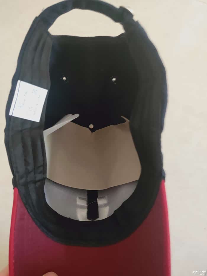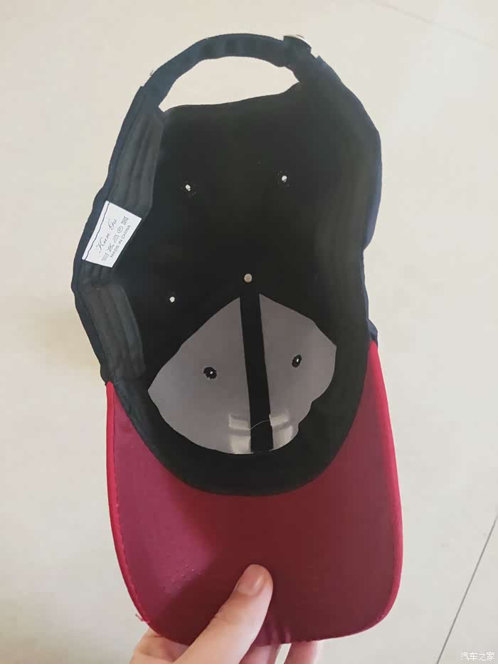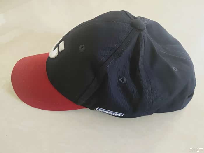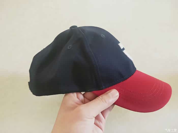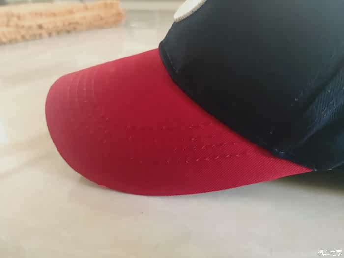 帽子整体有红黑白三种颜色,红色的鸭舌和黑色的帽顶相得益彰,白色logo点缀在帽顶前部,感官上比较简洁,整体看起来也很舒服。