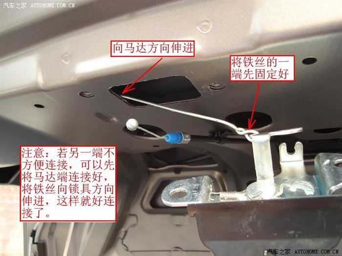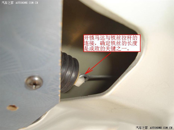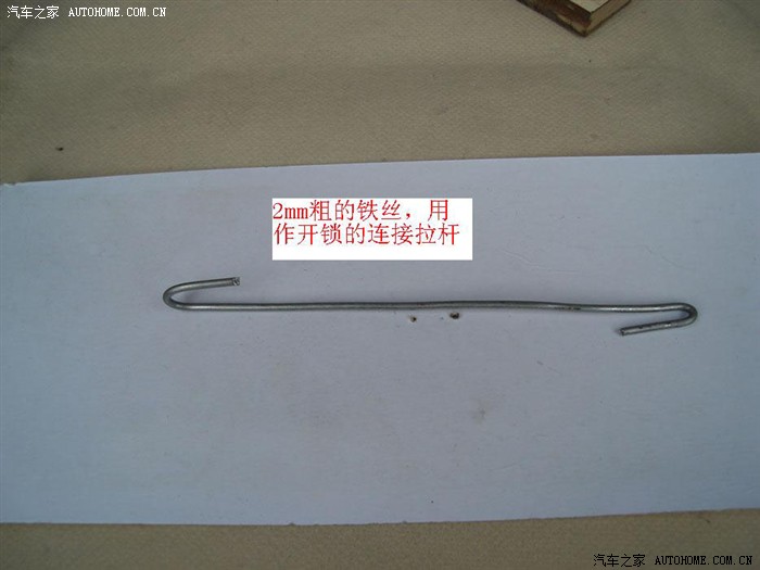 连接拉杆 — 一根长350mm,直径2mm的铁丝或铜丝。连接拉杆的作用是:连接电动马达与后备箱锁具,并传递开锁动力。