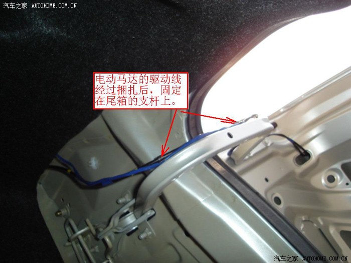 天语尚悦车可把电路板固定在后备箱侧面的支撑板上(需拆下左侧的装饰板才能看到支撑板)。可用胶带或捆扎带捆扎也可用蛇胶粘接。