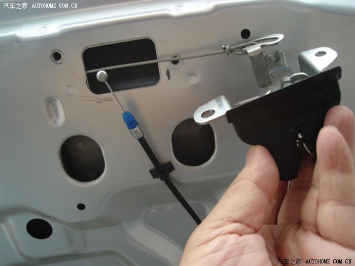 第四步 将后备箱盖上的锁具拆卸下来