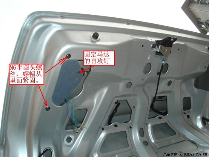 加装遥控开启后备箱功能其实非常简单,只要稍有动手能力的人都可以实现。遥控开启后备箱装置由两部分组成,一是控制电路,二是执行机构。一般有三种方案可供选择,方案的变化主要是控制部分的不同,执行机构是一样的。下面首先介绍通用部分,即执行机构的组成,然后再比较三种方案的利弊,均以天语尚悦为例加以详细介绍,该方法也适用于天语两厢车和其他车型。