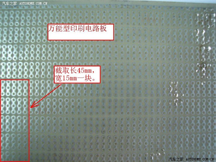 从万能印刷电路板上裁下一块长45mm宽15mm的长方形小块。