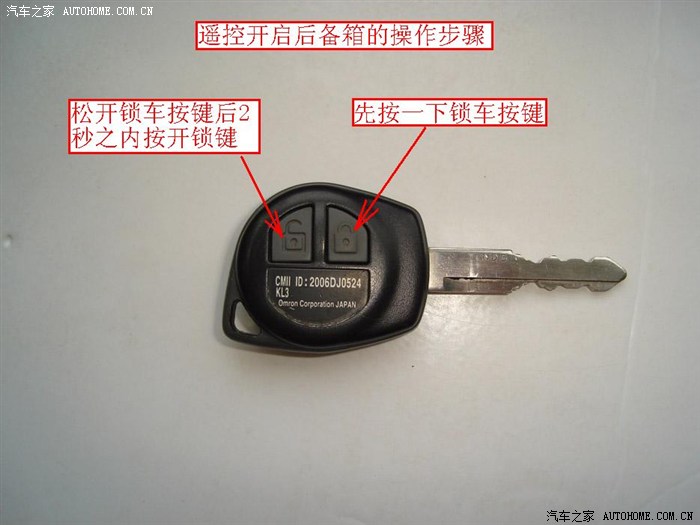 遥控开后备箱的操作步骤是:先按一下“锁车”按钮,松开后在两秒钟之内按“开锁”按钮,后备箱就会自动开启。
