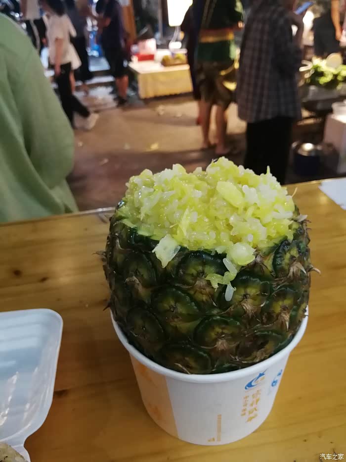 点了一份舂鸡脚,主要把各色蔬菜、佐料放到舂臼里,那个臼比我们用来捣蒜的那种臼大得多,臼口像脸盆那么大,木制的,再用木椿将菜捣碎,制作看似随意,但味道酸辣香,相当好吃惊艳。