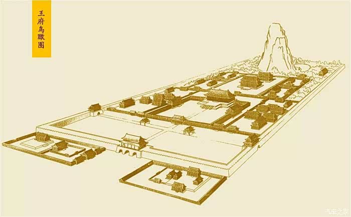 看看什么叫有靠山。王府鸟瞰图取自网络。