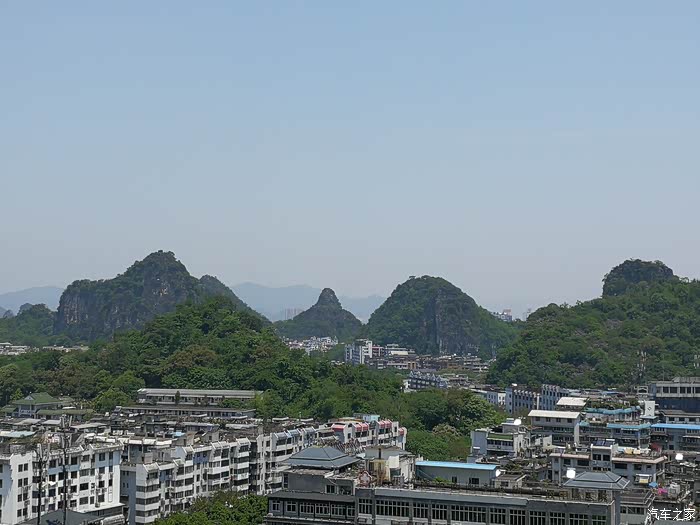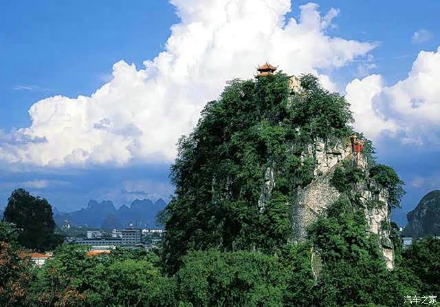 没有拍到独秀峰全景,在网上找了一张。独秀峰上有福字、寿字石刻,因此独秀峰又称为福寿山,且山体有道能登顶,山底有洞称龙宫。