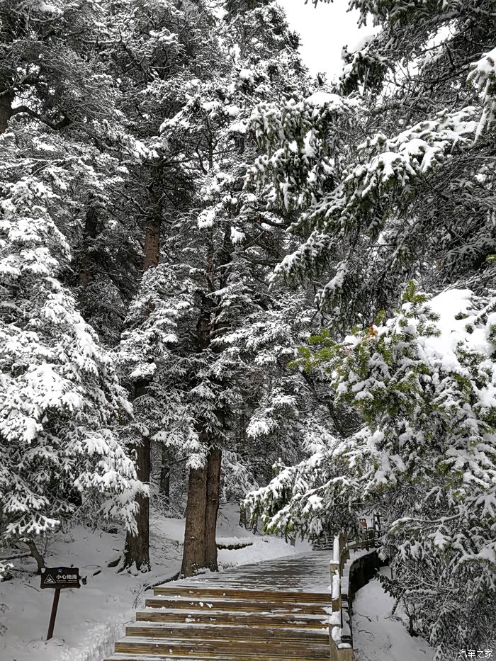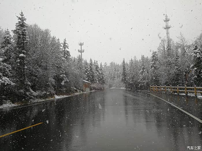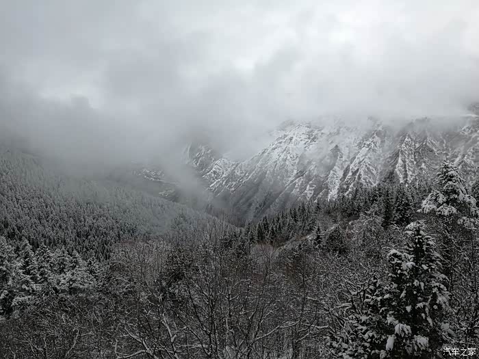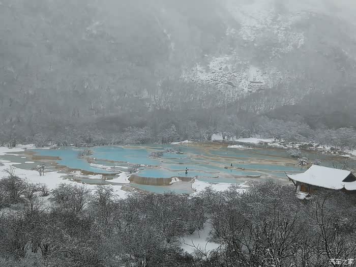 4月20日一早乘观光车进景区,先去的是则查洼沟,一路都下着鹅毛大雪。